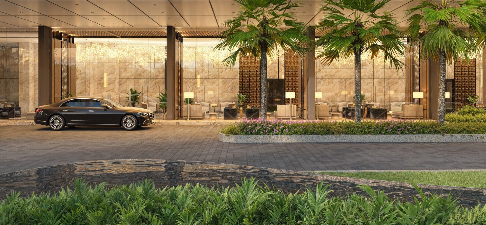 Grand 21,000 sq. ft. arrival lobby with expansive drop-off