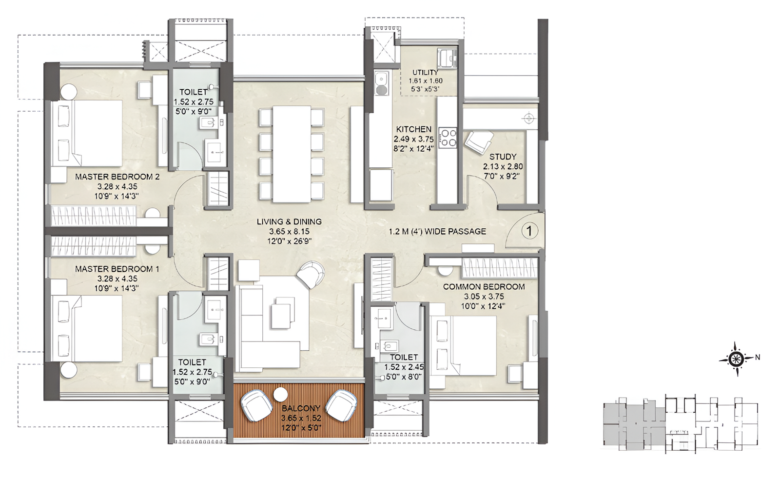 Spacious 3.5 BHK residences with private decks for enhanced indoor–outdoor living
