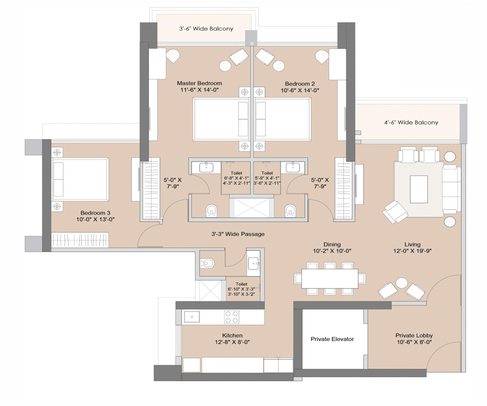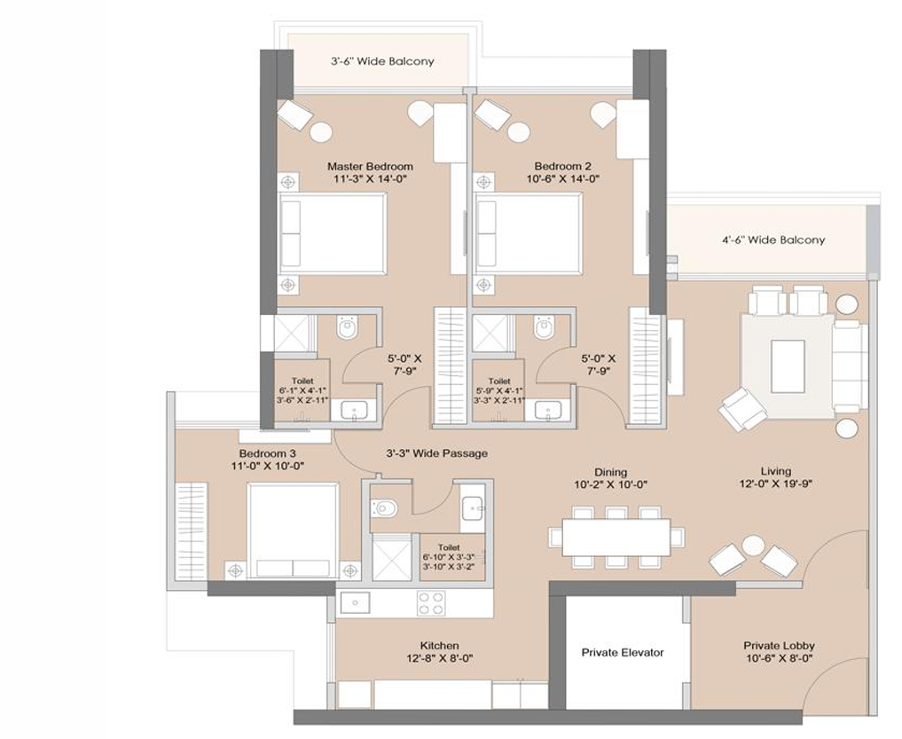 Carpet Area: 1267 – 1401 Sq. Ft.