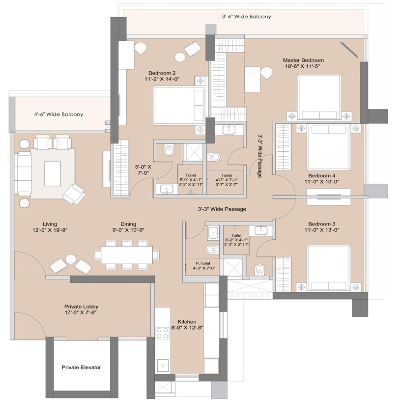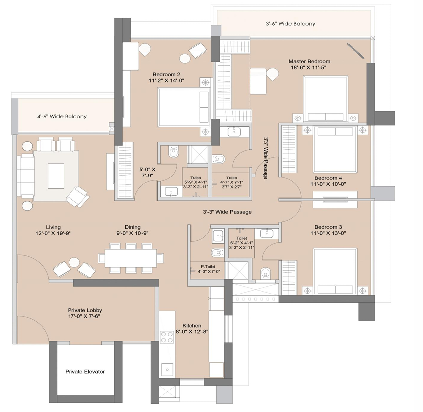 Carpet Area: 1657 – 1700 Sq. Ft.